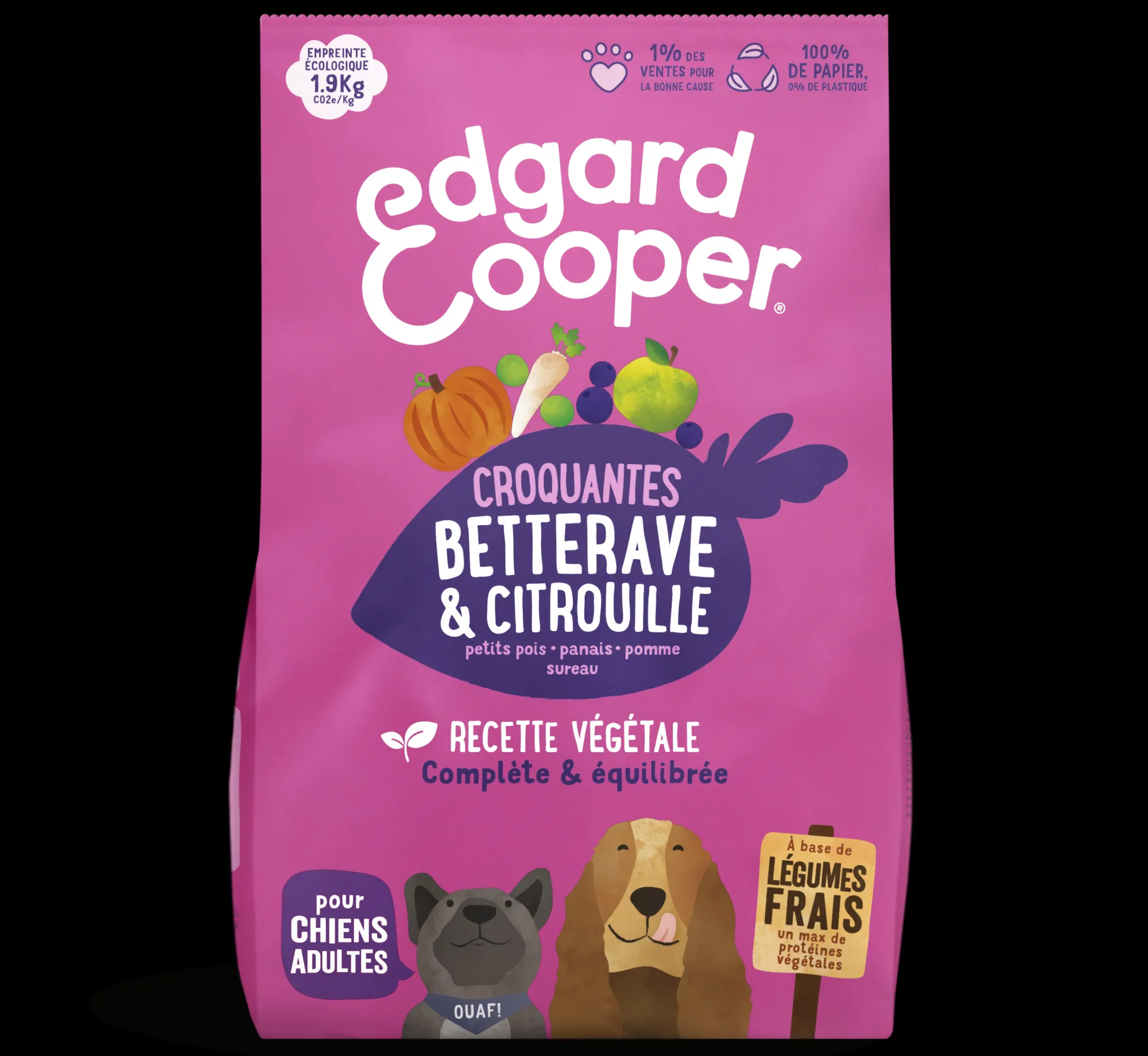 verse groenten 20% (pompoen 4%, rode bieten 4%, knolraap 3%, pastinaak 3%, aardappel 2%, bonen, erwten 1%, boerenkool), rijst 12,5%, rijsteiwit 11%, erwteneiwit 9%, zonnebloemolie, gist (gedroogd, inclusief mannan-oligosachariden (MOS)), plantaardige vezels, aardappeleiwit 4,5%, aardappel (gedroogd) 4%, erwtenzetmeel 3,5%, linzen (gedroogd), vegetarische saus, mineralen, luzerne (gedroogd), lijnzaad, erwten (gedroogd) 2%, zeewier (gedroogd), appels (gedroogd) 0,1%, cichorei (gedroogd), bosbessen (gedroogd), vlierbessen (gedroogd) 0,05%, DHA-gold, marjolein (gedroogd)