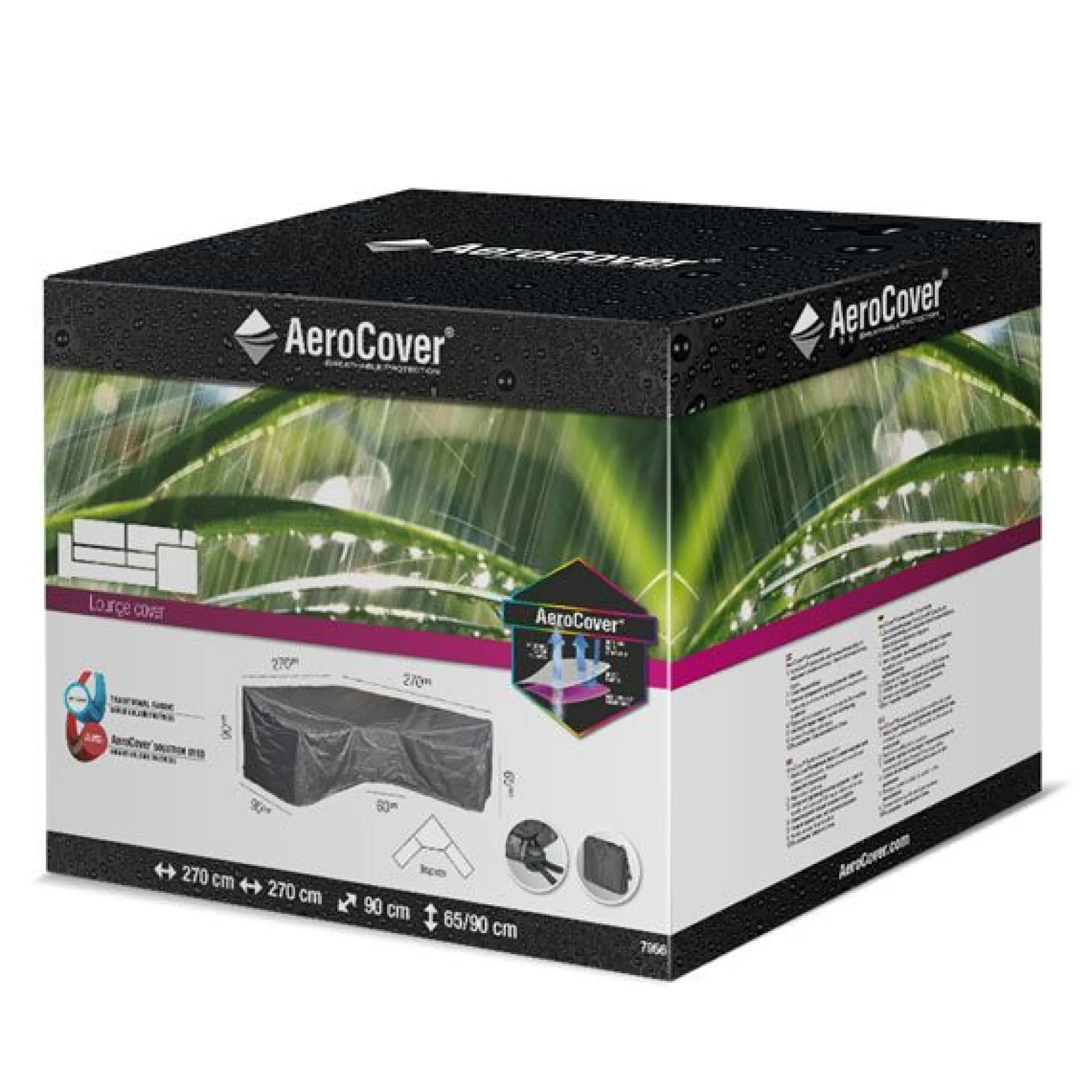 Loungesethoes voor hoeksets van AeroCover. Ademende loungesethoes voor loungeset met grote hoek of trapeze hoek en hoge rug 270x270x90xh65/90cm.