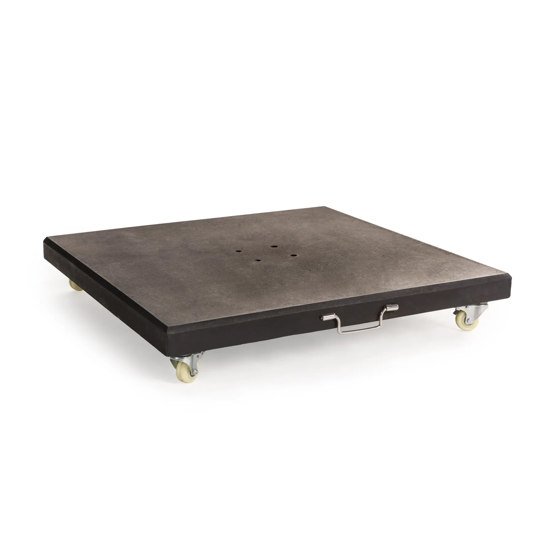 Een zwarte parasolvoet van 100kg, met 4 wieltjes, voor onze Monterey parasols.