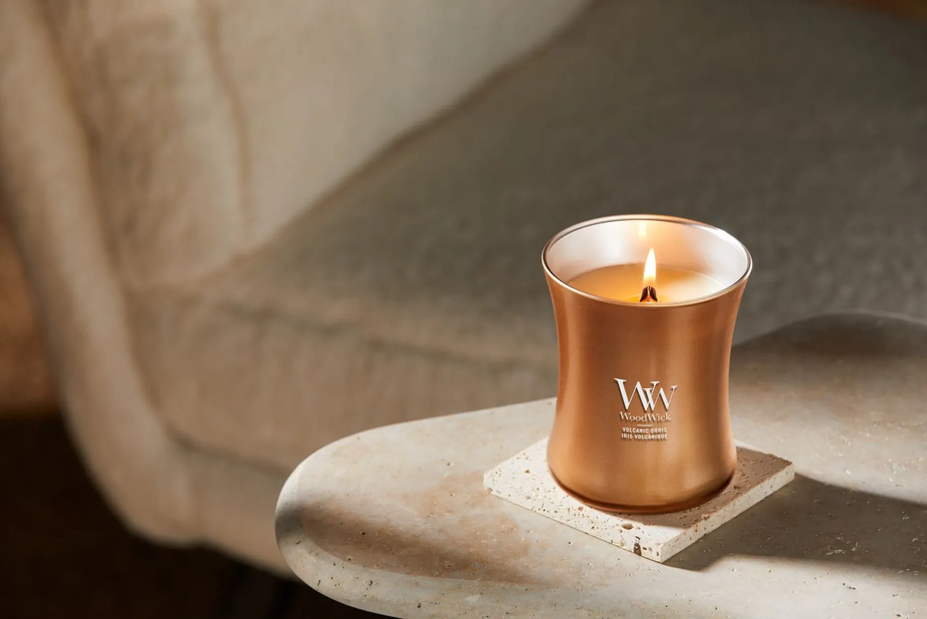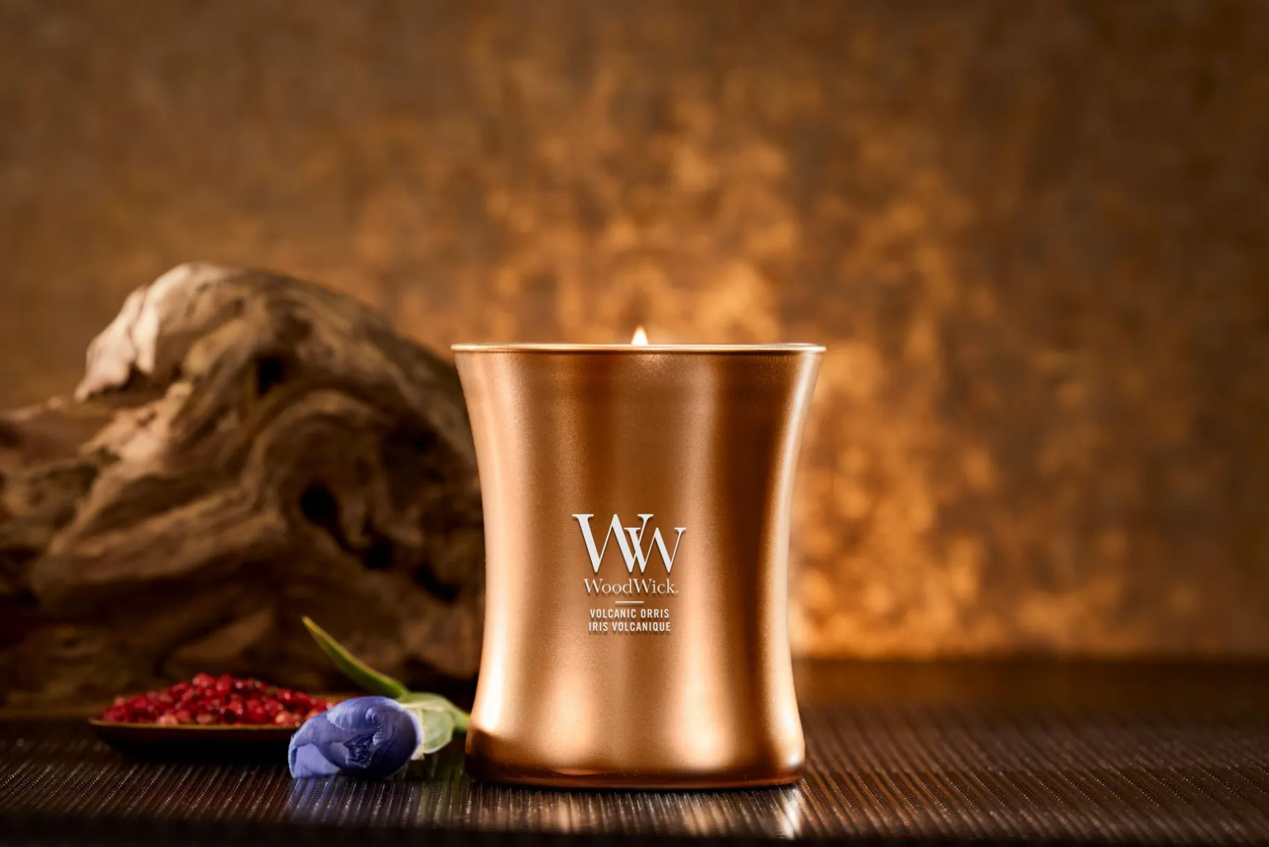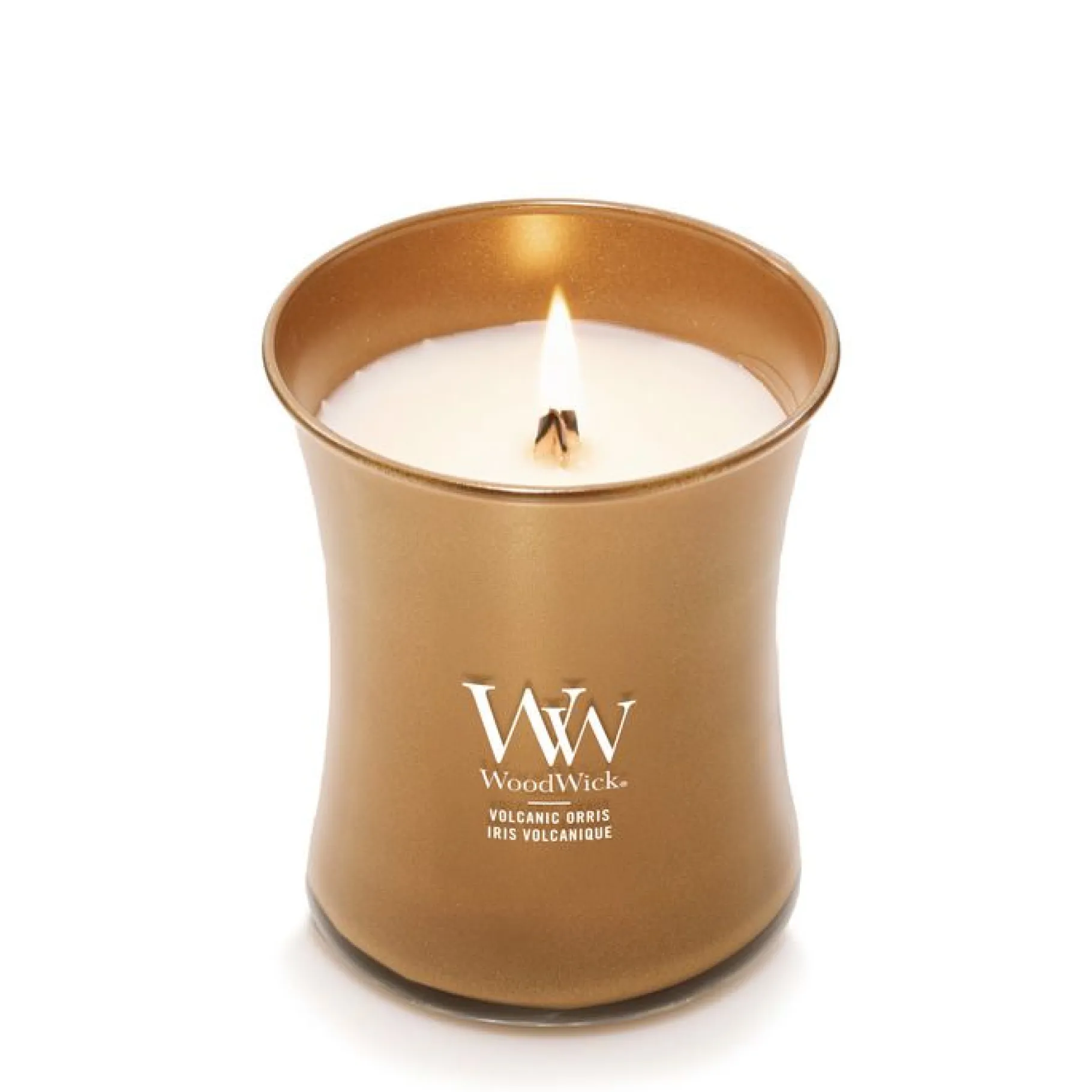 Ervaar de luxe van de Precious Metals Collectie met de WoodWick Volcanic Orris Medium Candle. Deze limited edition geurkaars combineert een weelderige geurbeleving met een stijlvol bronzen metallic design. De unieke Pluswick® Innovation houten lont zorgt voor een rustgevend knispergeluid en een gelijkmatige verbranding, terwijl de hoogwaardige soja wax blend een snelle en langdurige geurverspreiding biedt. Met een brandduur van circa 60 uur is dit de perfecte kaars voor een elegante en sfeervolle toevoeging aan je interieur.