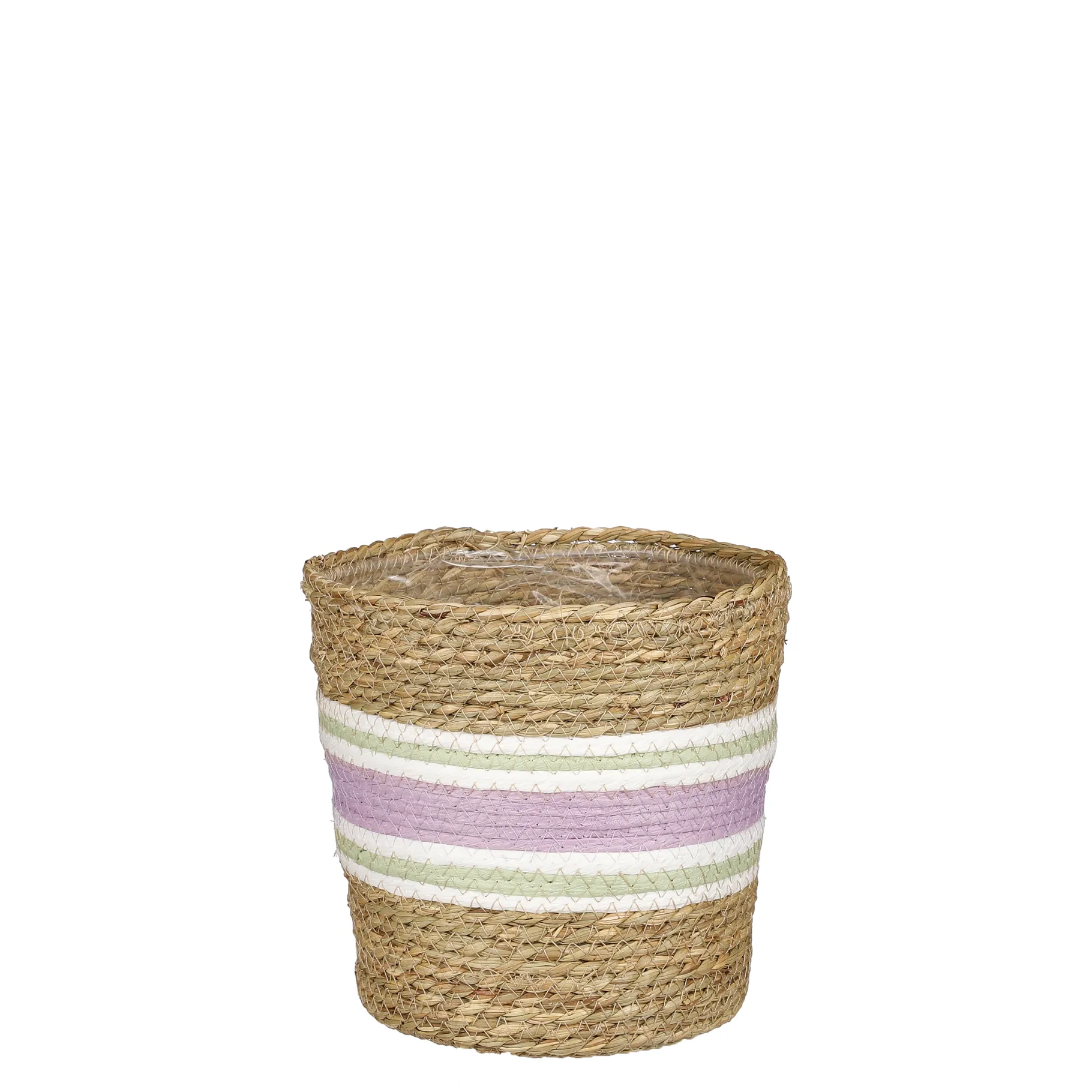 Mand Rachel uit de collectie van Mica Decorations is functioneel en geeft tegelijkertijd een natuurlijke touch aan je interieur. De plantenmand is namelijk handgemaakt van zeegras en erg milieuvriendelijk. Deze natuurlijke basis is in het bovenste deel van de mand duidelijk terug te zien, terwijl de streep een trendy, lila kleur heeft. Door de plastic liner is de mand erg geschikt om er een leuke plant in te zetten, maar je kunt er ook wat dingen in opbergen. De Rachel manden zijn verkrijgbaar in verschillende kleuren en maten. Deze mand is lila en heeft een afmeting van H18 x Ø18 cm.